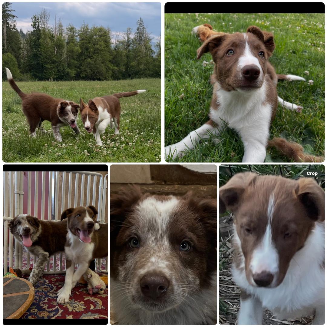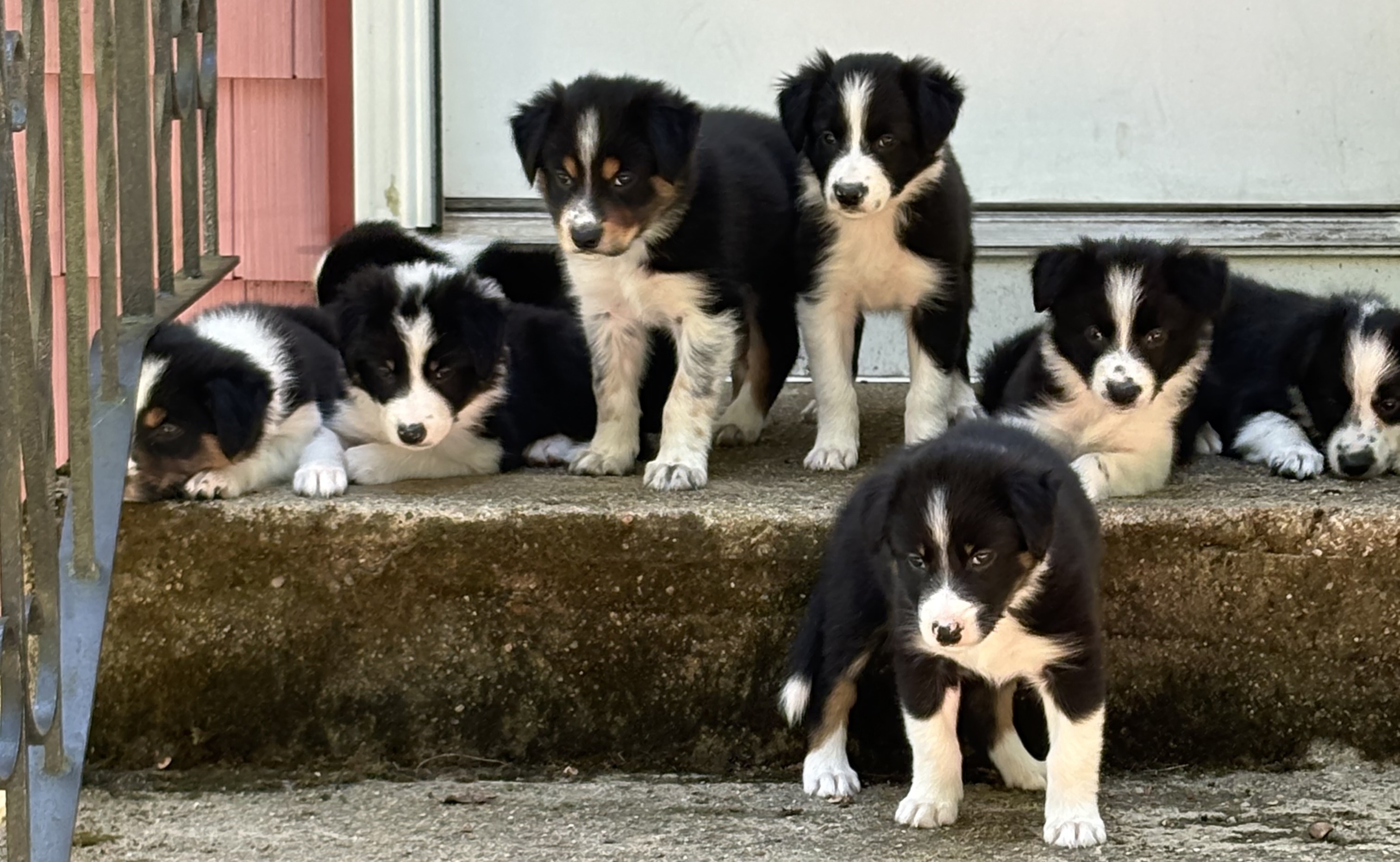 Beautiful litter of puppies looking for working/active homes. 3 males, 3 females. Ready to go after August 21, 2023. They are active, well socialized, and have great temperaments. Previous pups from this cross have become great sheep/cattle dogs. Puppies will have first shots, dewormed, microchipped and CBCA Registered. Sire is Imported Burndale Glen. Puppies are located in Salmon Arm, BC. |
